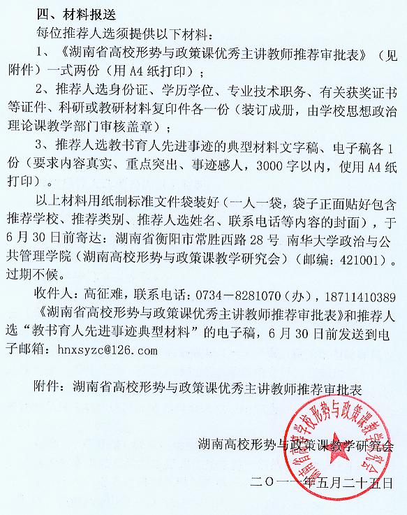 1、此次共评选形势与政策教学与研究优秀教师70名左右(含形势与政策类湖南省理论学习服务专家)。本科院校和高职高专均可推荐1人参评。