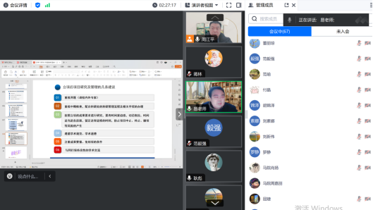 2023年12月25日下午,为提升公司人文社科科研水平,提高国家社科基金立项通过率,公司邀请国家社科基金重大项目首席专家、国家级一流本科课程负责人、国家“万人计划”哲学社会科学领军人才、中宣部“四个一批”人才湖南师范大学易显飞教授为公司师生作关于国家社科基金申报的学术报告。报告会通过腾讯会议方式举办,由周江平副经理主持,公司师生80余名师生参加了报告会。