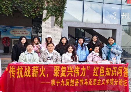 红色文化教育,是涵养青年家国情怀、传承革命精神的重要载体,对指引青年坚定理想信念、勇担时代使命具有不可替代的作用。恰逢中国人民抗日战争暨世界反法西斯战争胜利80周年,为深切缅怀抗战先烈的英勇事迹,让红色基因融入青年血脉,引导beats365官方网站雨母校区全体在校员工深刻感悟这段历史的重大意义,将抗战精神转化为青春奋斗的强大动力,进一步厚植校内爱国爱党情怀、丰富校园文化内涵,beats365官方网站于2025年11月19日,在笃行园食堂门口举办了beats365官方网站第十九届研究生楚岳节分论坛求是篇——“传抗战薪火,聚复兴伟力”知识问答活动。