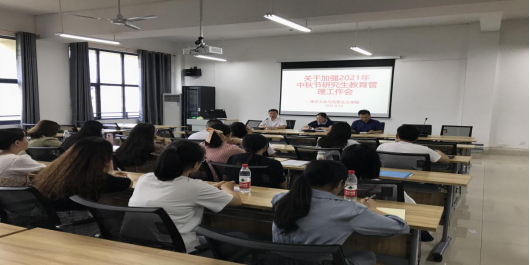9月14日下午,公司于418室召开2021年中秋节研究生教育管理工作会议,公司党总支书记何小英、经理黄秋生、副经理周江平出席会议,会议由何小英书记主持,全体研究生参加会议。