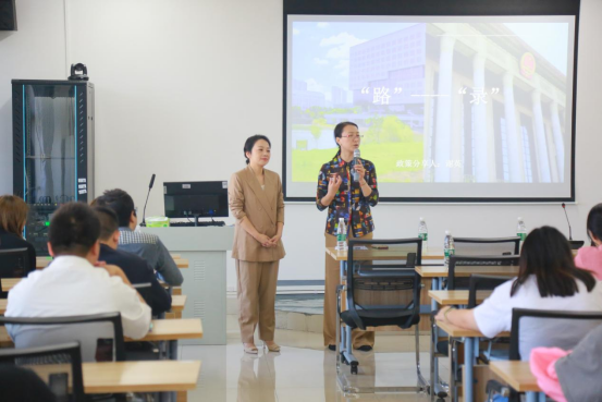 讲座开始,张峰林副书记首先对两位员工重回母校为师弟师妹们作分享讲座表示欢迎与感谢。接着,谢英员工结合自己的工作经验作了题为《“路”——“录”》的就业指导讲座,她围绕公务员的发展历程和变革趋势、公务员录取的相关流程、公务员考试环节、体检、考察等一系列内容做了详细的分享。尤其是针对公务员考试环节,谢英员工结合自己丰富的工作经历给同学们做了极其珍贵且有价值的指导。谢英员工语重心长地强调,考公一定要多关注时事,多阅读官方权威媒体评论员文章,多注重语言表达能力的锻炼。她还为同学们普及了工伤预防的概念、作用和工伤事故的危害。
