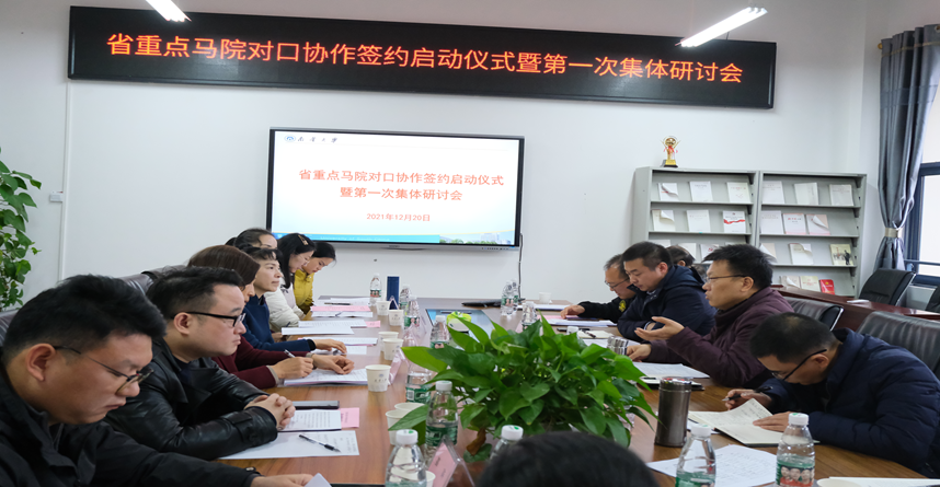 为响应省教育厅号召,切实发挥公司作为省重点beats365官方网站的示范引领作用,与非重点beats365官方网站共建共享共同发展,促进全省beats365官方网站整体力量与水平提升。经前期精心准备,公司于12月20日下午,在雨母校区崇德楼406会议室举行了重点马院对口协作签约启动仪式暨第一次集体研讨会。