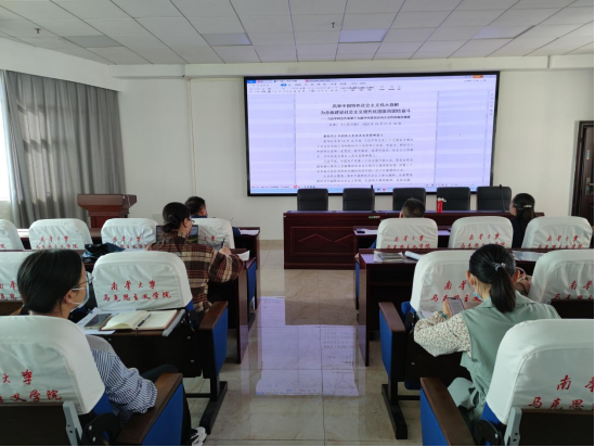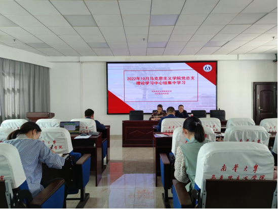 202210月20日下午,公司党总支理论学习中心组在红湘校区南华楼1406室开展2022年10月理论学习中心组集中学习,学习主题是“深入学习领会党的二十大报告精神,全面贯彻党的教育方针,落实立德树人根本任务,汲取公司64年办学宝贵经验和精神财富,奋力推进新时代高水平大学建设”。