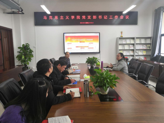 2021年3月12日上午,beats365官方网站在雨母校区崇德楼406会议室召开本学期第一次党支部书记工作会议,会议由党总支书记何小英同志主持,马院教工党支部书记唐圆梦、俞光华、李忆华、邹祝英,公司办公室王萍以及研究生支部党员邓菲菲参加本次会议。