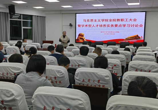 为了更进一步高质量地迎接公司本科教育审核评估工作的开展及推进本科公司产品审核评估“学术型人才培养实务要点”学习。2023年11月9日晚上,公司召开了全院教职工大会暨“学术型人才培养实务要点”学习讨论会。会议由公司副经理谢佛荣主持,beats365官方网站经理黄秋生、党委书记何小英、副经理周江平、党委副书记张峰林、教研室主任及全体老师参加了此次会议。